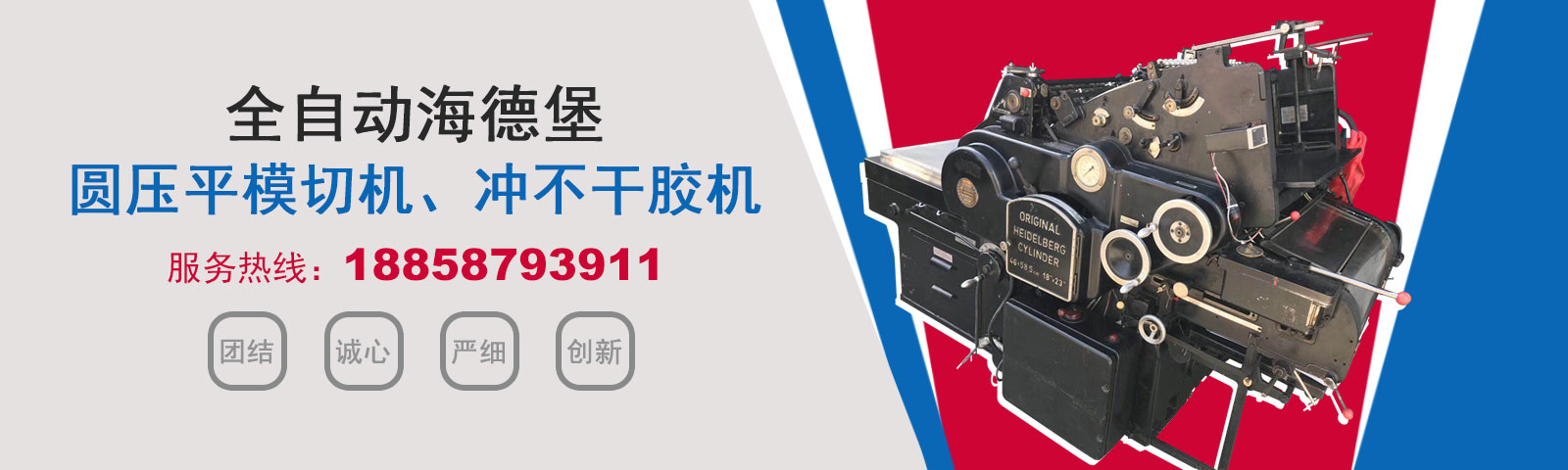 瑞安市恒柯機械廠(www.wzhkjx_com.shinhwaworldjeju.cn)是國內專業制造銷售全自動模切機,全自動燙金機,圓壓平模切機,圓壓平燙金機,滾筒燙金機,沖不干膠機,海德堡凸印機.銷售的產品系列規格齊全,產品具有速度快,壓力均勻,套印準確等特點。
